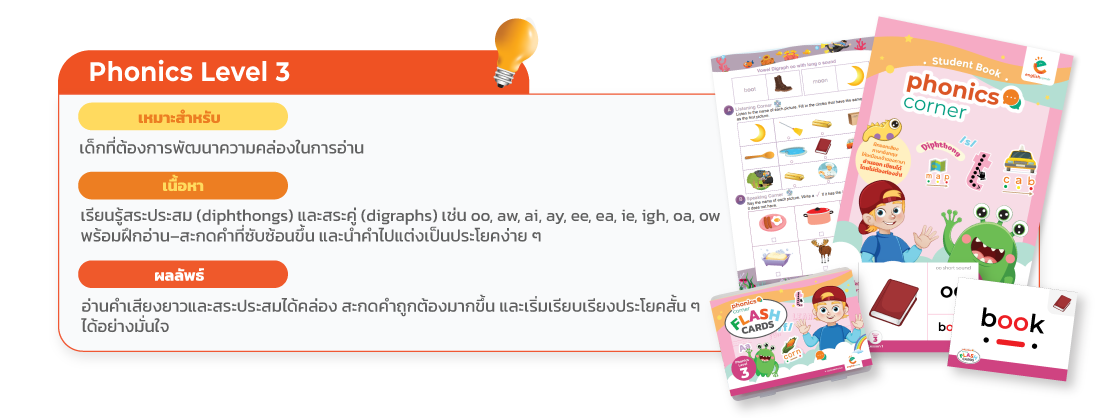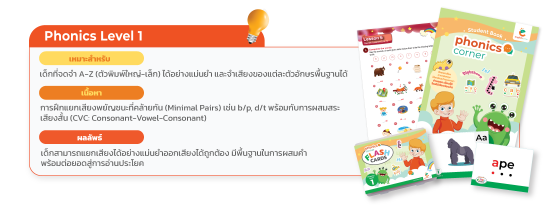 ✅Phonics : เน้นการฝึกออกเสียงให้อ่านได้ สะกดคำได้คล่องไม่ต้องท่องจำ เป็นทักษะพื้นฐานก่อนเริ่มเรียนแกรมม่า